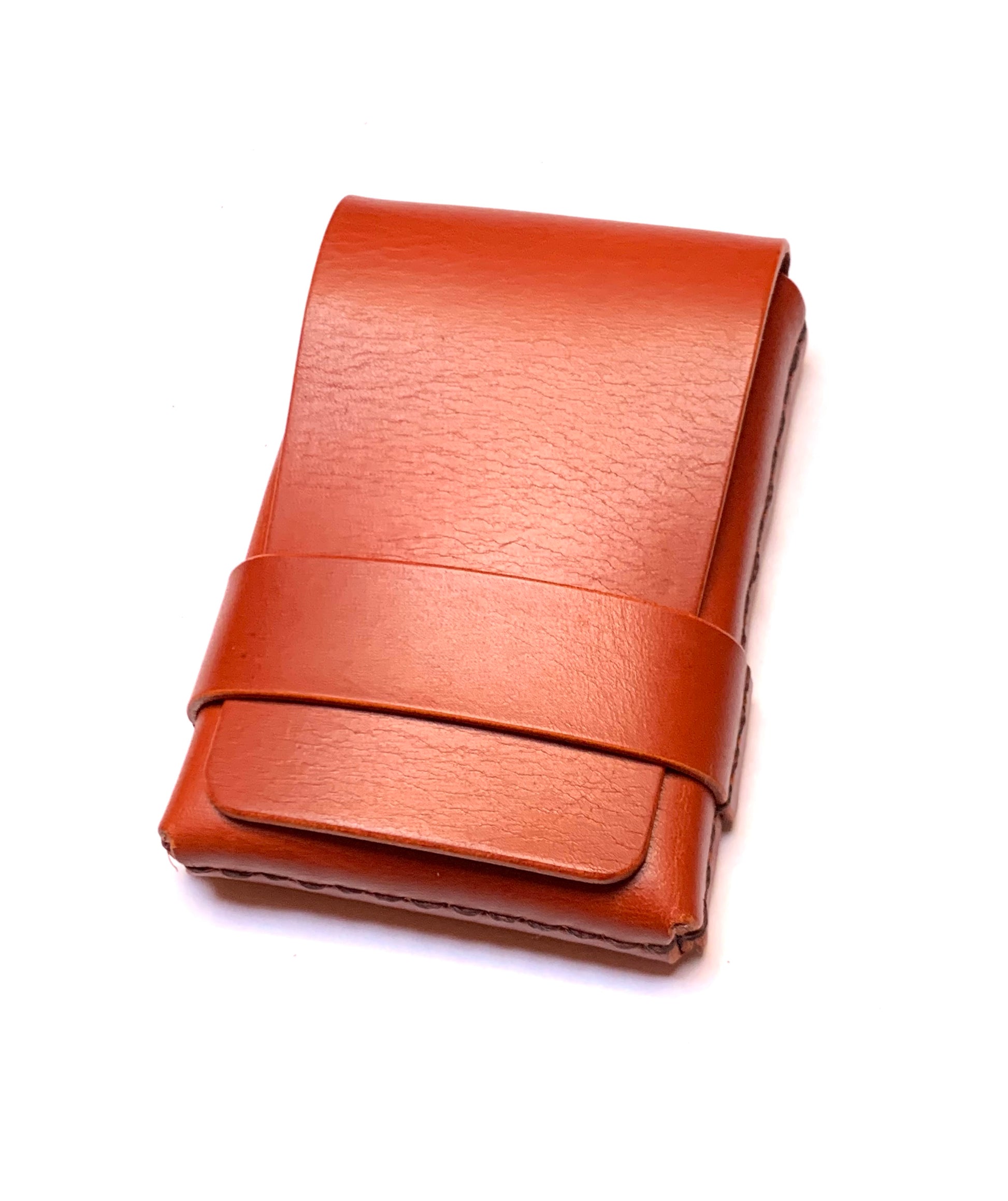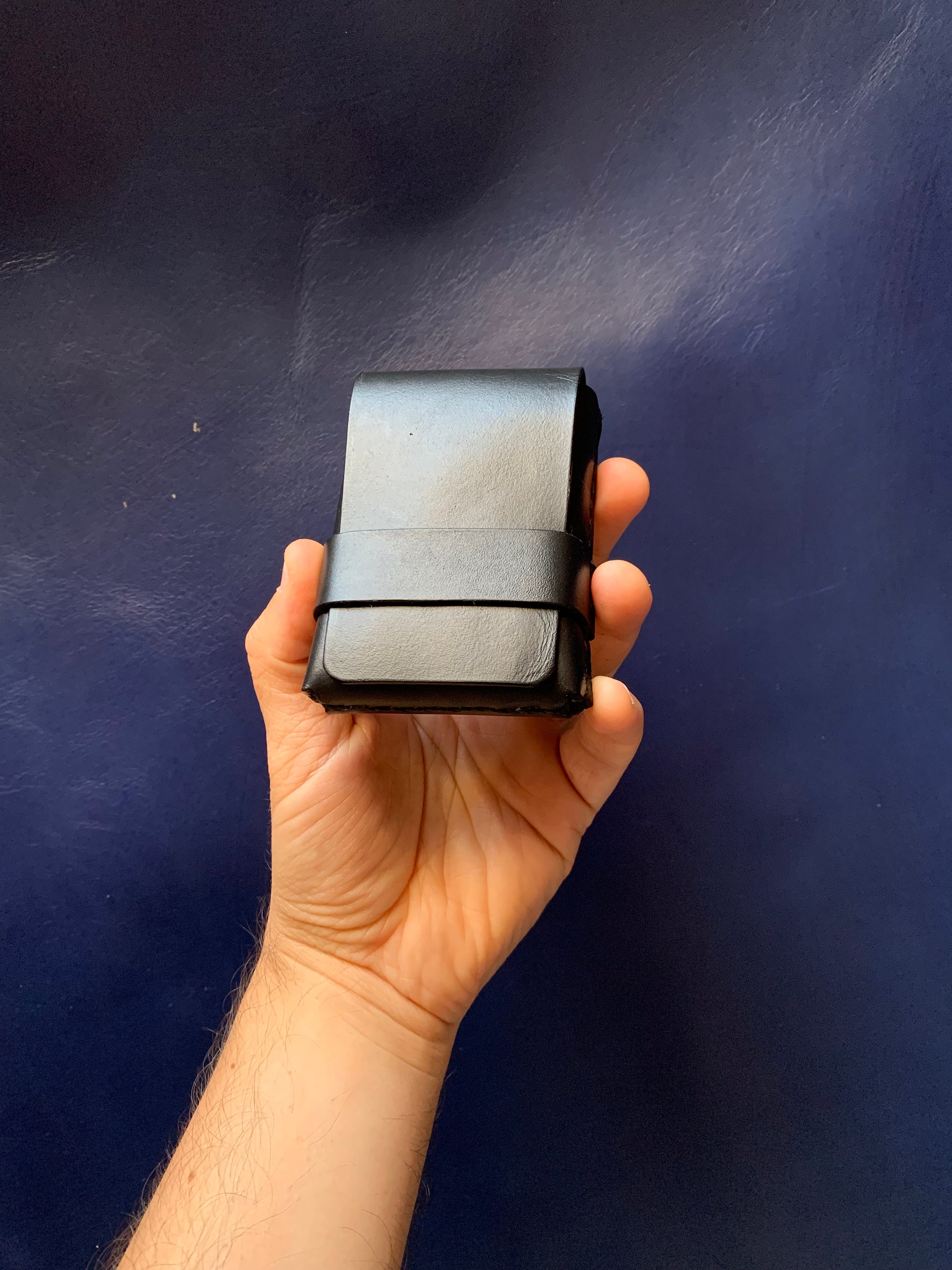 Nuestro tarjetero de mayor capacidad (para 14 tarjetas aproximadamente) sigue siendo muy pequeño y ocupa muy poco espacio. Se configura con 3 piezas de cuero de grano completo curtido vegetal elaboradas una a una con mucha paciencia, total dedicación y 100% a mano exclusivamente para ti.