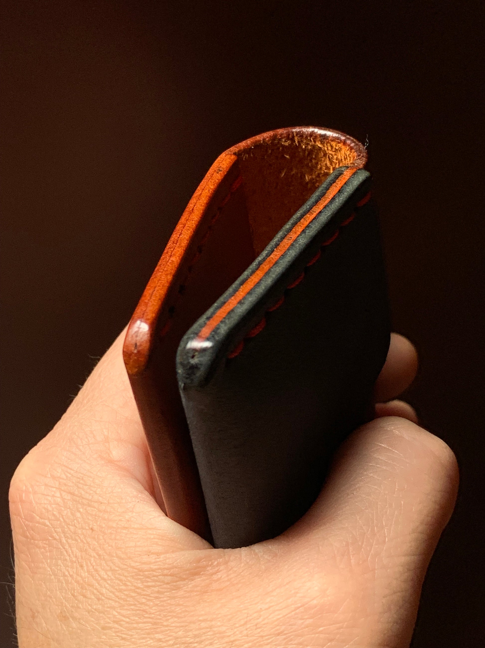 Nuestro tarjetero bifold Jungian te permite combinar dos piezas de cuero de grano completo curtido vegetal para generar 3 compartimentos, que elaboraremos 100% a mano con total dedicación y calma especialmente para ti.